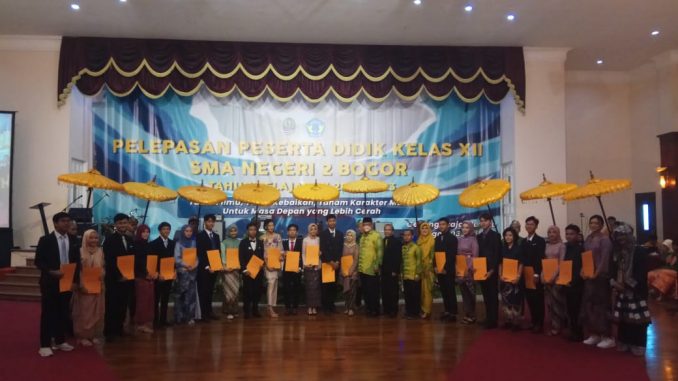 Acara perpisahan yang dihadiri Kepala SMAN 2 Kota Bogor, Semua Kepala SMAN Se Kota Bogor, Perwakilan Dinas Pendidikan Provinsi Jawa Barat, Ketua Komite SMAN 2 Kota Bogor, guru-guru, staff, siswa XII beserta para wali siswa.(Nia)