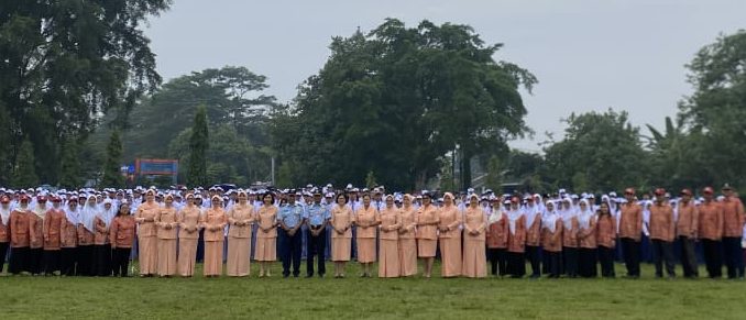 Kabarindonesianews-Komandan Lanud Ats, Marsma TNI Andy Ferdinand Picaulima, S. Sos. memimpin upacara pembukaan Masa Pengenalan Lingkungan Sekolah (MPLS) bagi peserta didik baru Tahun Pelajaran 2025/2026 untuk TK, SD,SMP, SMK Angkasa di Stadion Elang Bondol. Senin (14/7/2025).