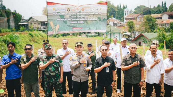 Kabarindonesianews-Polres Bogor,Dalam rangka mendukung Program Polri untuk Ketahanan Pangan Nasional, Polres Bogor melaksanakan kegiatan Penanaman Jagung Serentak Kuartal IV pada Rabu (8/10/2025). Kegiatan ini dilaksanakan secara serentak oleh Polda jajaran melalui sarana Zoom Meeting, dan untuk wilayah Kabupaten Bogor dipusatkan di Kampung Sukamulya, Desa Kopo, Kecamatan Cisarua, Kabupaten Bogor.